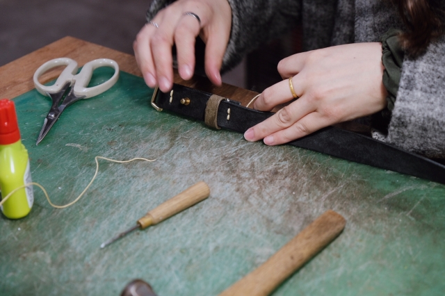 穴の位置や長さなど、ご自身のサイズに合わせて調節します